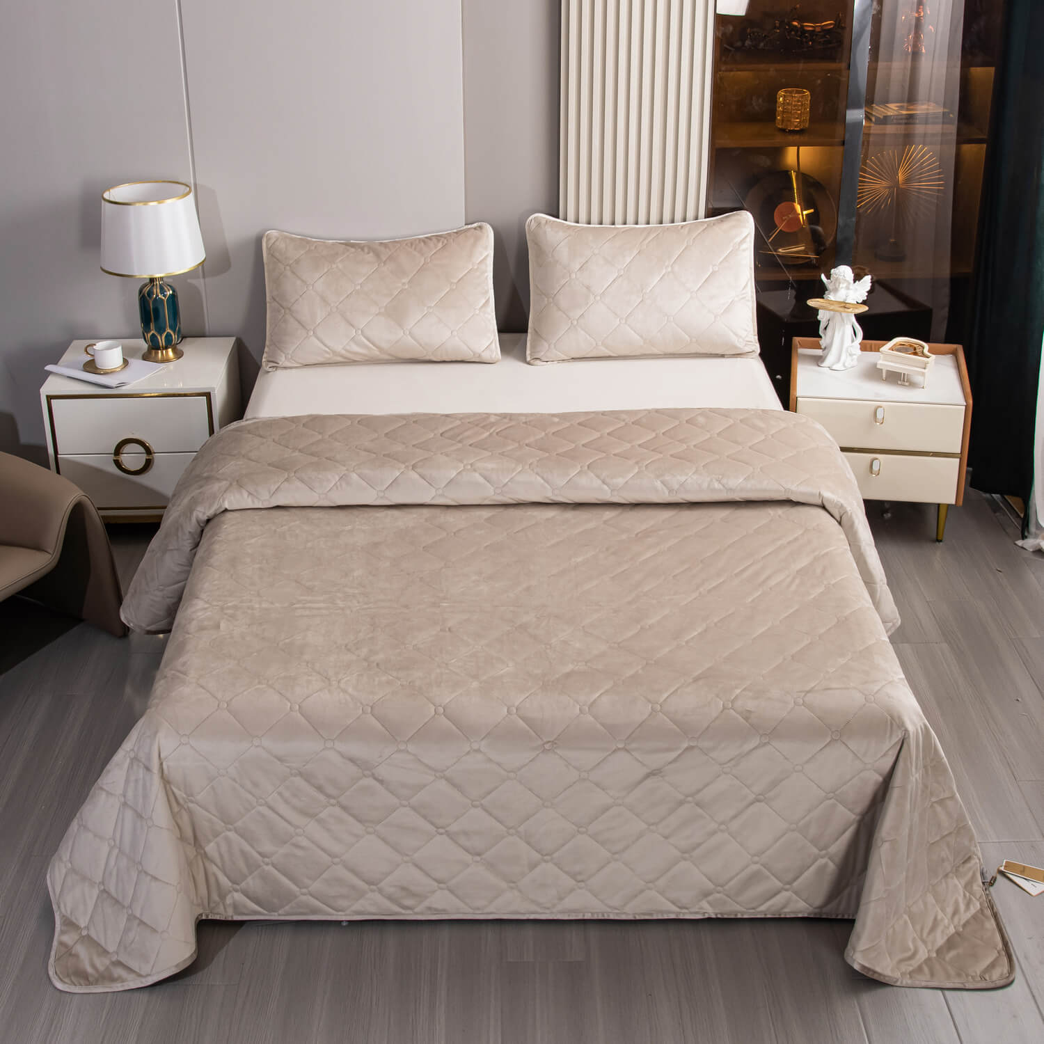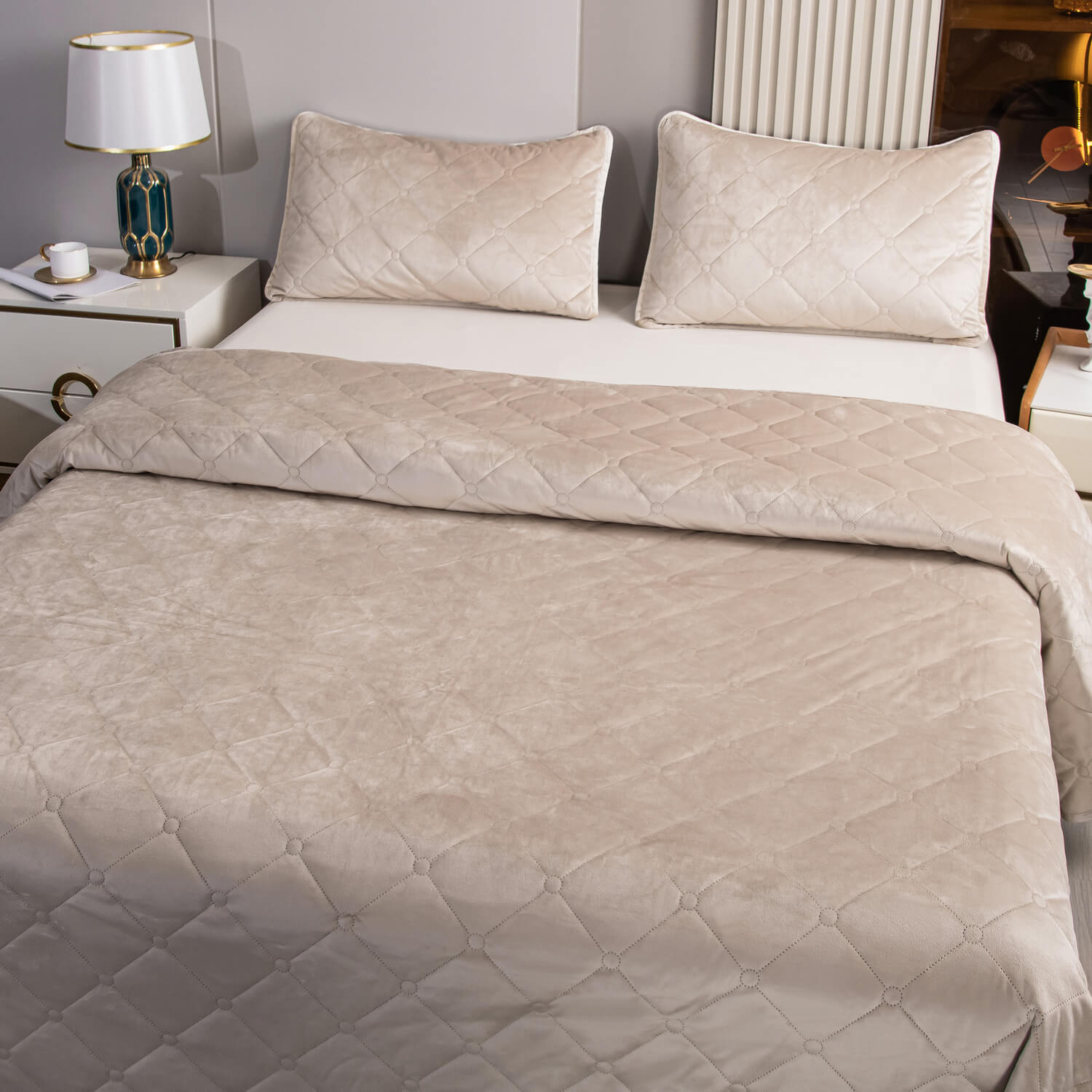 Велюровое покрывало ромб и две наволочки (Бежевый)